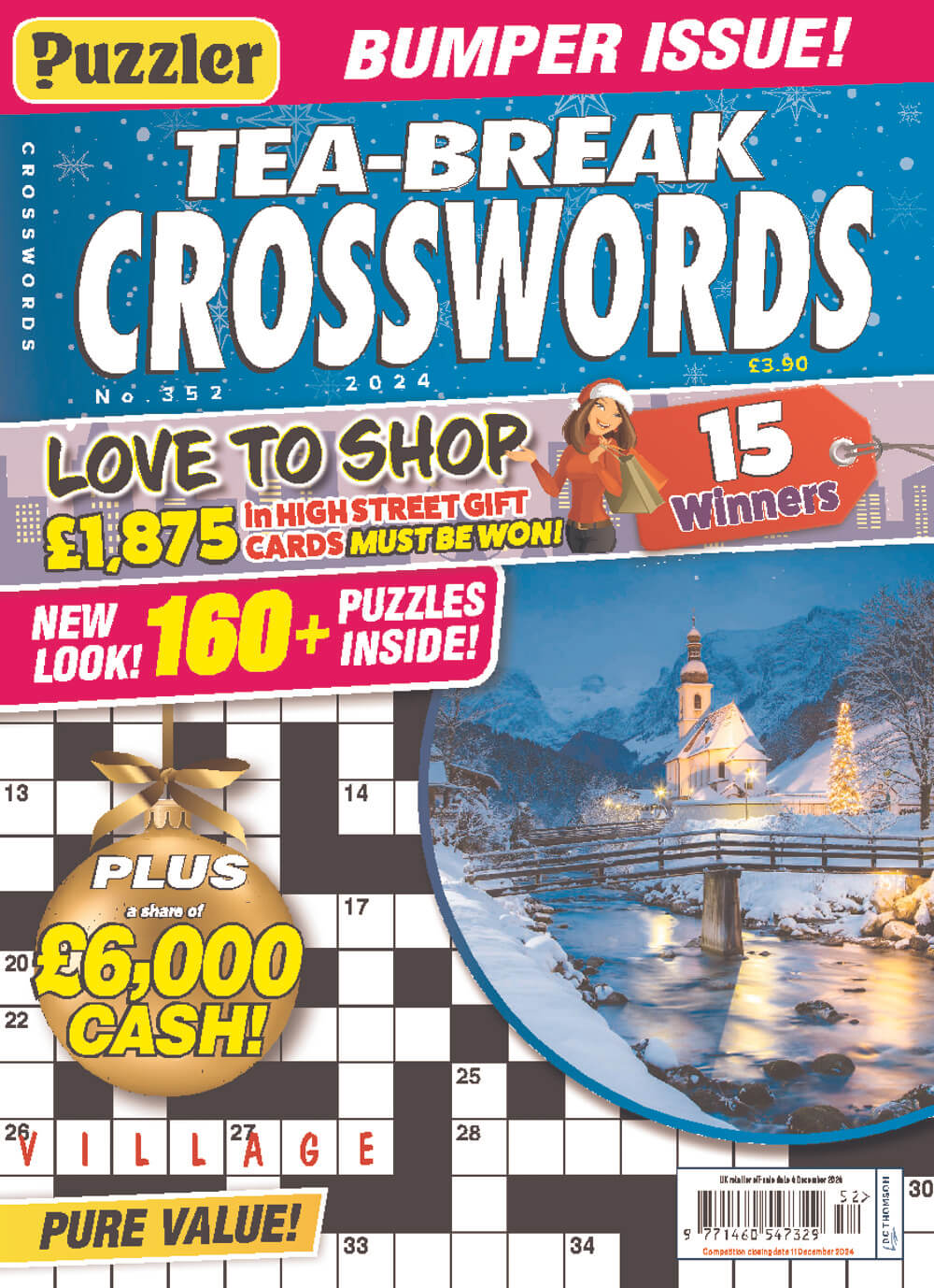 As the name suggests, the crosswords in this magazine are perfectly suited to the time it takes to enjoy a cup of tea. The puzzles are almost exclusively straightforward crosswords with 'definition' clues. General knowledge clues are used sparingly.
