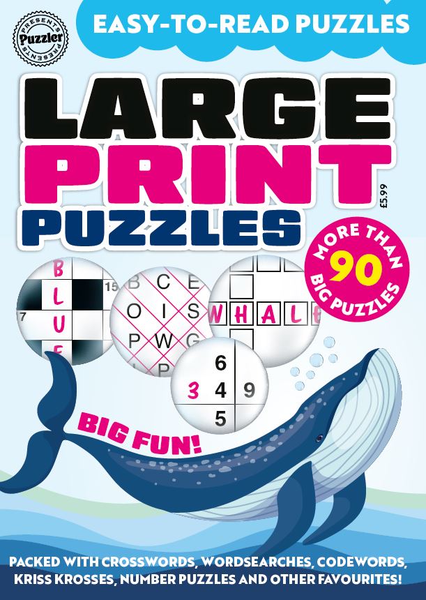 Have a whale of a time with Large Print Puzzles, a mega mix of all your favourite teasers in easy-to-read large print for incredibly clear solving.