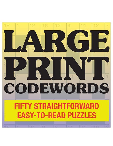 Fifty codewords designed to be easy to read, with large print and a clear typeface. Fifty-seven pages with 50 puzzles plus solutions.